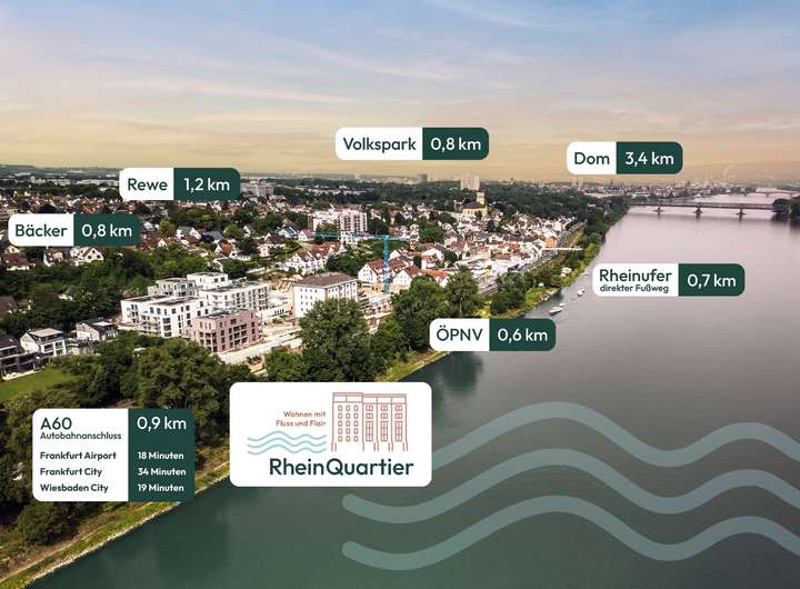 Erleben Sie ein neues Wohngefühl direkt am Rhein. Das RheinQuartier mit Eigentumswohnungen in Mainz-Weisenau vereint modernes Wohnen mit naturnahem Lebensstil. Hier genießen Sie die perfekte Balance zwischen urbanem Komfort und entspannender Rheinatmosphäre. Großzügige Außenanlagen, hochwertig ausgestattete Wohnungen und ein durchdachtes Architekturkonzept schaffen ein Wohnquartier, das Lebensqualität neu definiert. Sichern Sie sich jetzt Ihre traumhafte Eigentumswohnung in Mainz-Weisenau.
