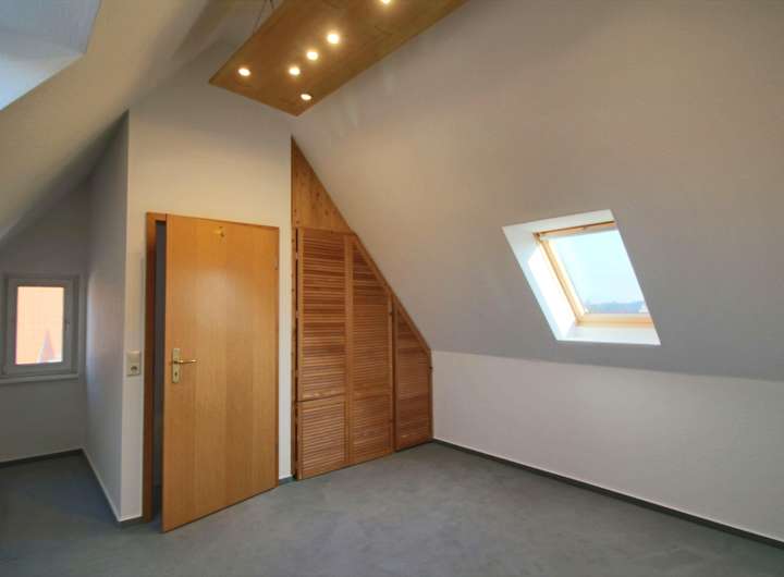 Der ausgebaute Dachboden ist mit einem großzügigen Arbeitszimmer ausgestattet. Weiterhin ist dort die platzsparende Heizung installiert.