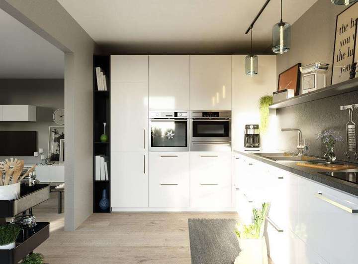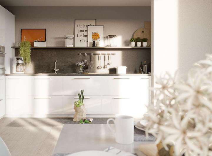 Ein geräumiger Wohnbereich mit angrenzender offener Küche oder ein kompaktes Badezimmer bieten viel Platz für den Familienalltag!