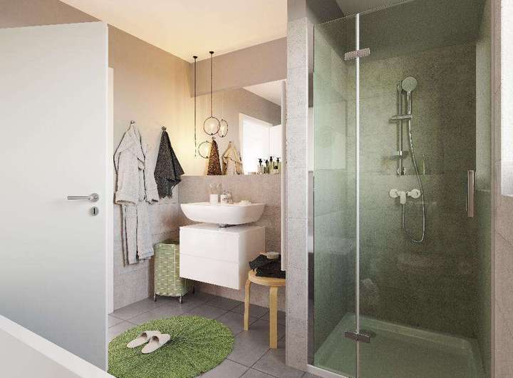 Ein geräumiger Wohnbereich mit angrenzender offener Küche oder ein kompaktes Badezimmer bieten viel Platz für den Familienalltag!