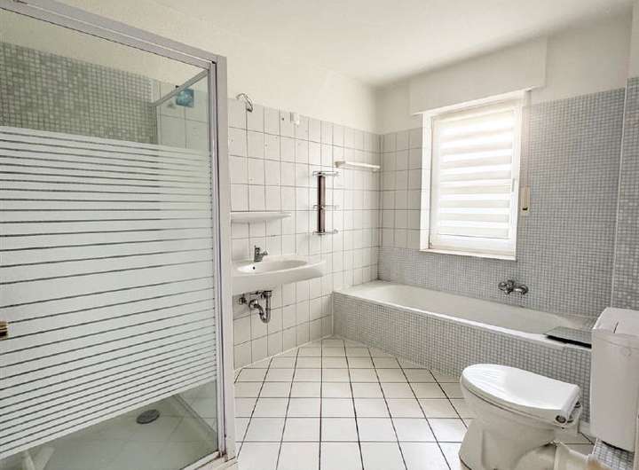 Auch das große mit Tageslicht durchflutete Vollbad hat eine gelungene Raumaufteilung und spricht ebenfalls optisch dank der verwendeten Materialien sehr an. Alles in allem eine gemütliche, äußerst ansprechende und gepflegte Eigentumswohnung.