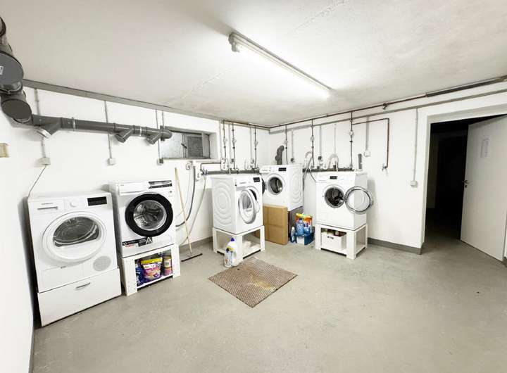 Die Wohnanlage bestehend aus zwei Dreifamilienhäusern auf einem gemeinsamen Kellergeschoss mit Tiefgarage stehend, wurde 1992 errichtet. Hier befinden sich sechs Kellerräume eine gemeinschaftlich genutzte Waschküche, ein Fahrradkeller, sowie acht Pkw-Einstellplätze.