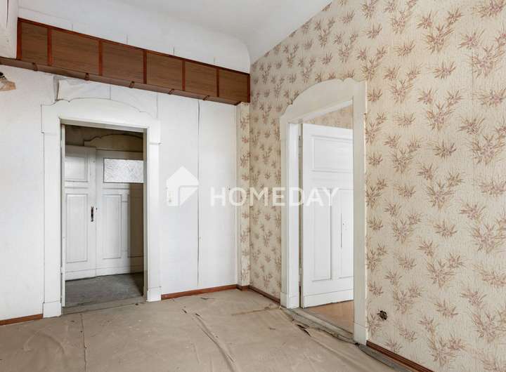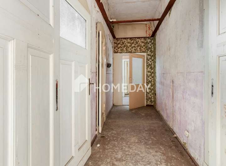 Schon beim Betreten des Hauses spürt man den besonderen Charme des Altbaus: Hohe Decken, großzügige Raumfolgen und klassische Grundrisse bieten viel Potenzial für individuelle Sanierungskonzepte. Die exemplarisch dargestellte Wohnung auf den Fotos verdeutlicht den sanierungsbedürftigen Zustand – und zugleich das große Entwicklungspotenzial dieser Immobilie.