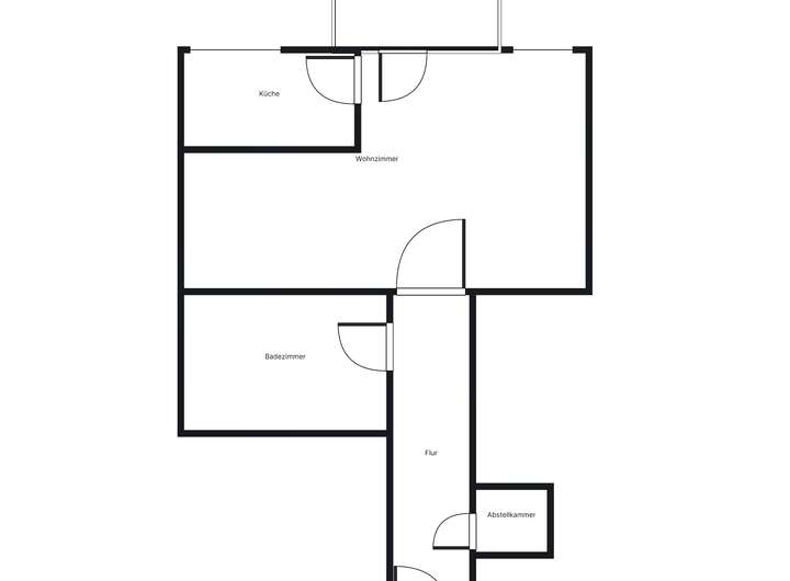 Vom Flur aus gelangt man in eine praktische Abstellkammer, das Badezimmer sowie in den Wohn- und Schlafbereich. Von diesem Raum aus sind sowohl die Küche als auch der Balkon erreichbar, wodurch ein angenehmer, funktionaler Grundriss entsteht.
