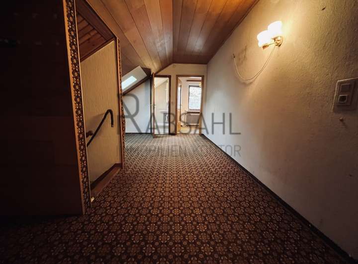 Diese Immobilie beeindruckt mit einer großzügigen Terrasse und einer gut zugänglichen Garage im Keller. Das Objekt ist teilweise unterkellert, was zusätzlichen Stauraum bietet. Im Inneren finden Sie ein lichtdurchflutetes Wohn-/Esszimmer, das zum Verweilen einlädt. Die Zentralheizung wird mit Öl betrieben. Das weitläufige Grundstück, das über einen eigenen kleinen Wald verfügt, eröffnet vielfältige Möglichkeiten, darunter auch eine zusätzliche Bebauung. Zudem besteht die Möglichkeit eines Abrisses und Neubaus gemäß dem bestehenden Bebauungsplan. Beachten Sie bitte, dass sich die Immobilie in einem sanierungsbedürftigen Zustand befindet, da die Fenster und die Heizung erneuert werden müssen sowie umfangreiche Renovationen anstehen.