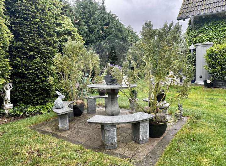 - Terrasse, Garten mit Teich – ein Platz zum Durchatmen
