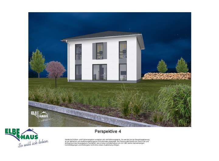 Dieses innovative Elbe-Haus® wird in massiver Bauweise von qualifiziertem Fachpersonal errichtet. Wir planen und projektieren nach Ihren Vorstellungen und Wünschen und somit ist wirklich jedes Haus einzigartig. Beachten Sie bitte, dass das abgebildete Haus lediglich ein Bebauungsbeispiel ist. Das Grundstück kann unter Berücksichtigung der örtlichen Bauvorschriften mit Ihrem Wunschhaus von Elbe-Haus® errichtet werden.