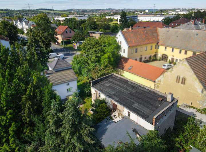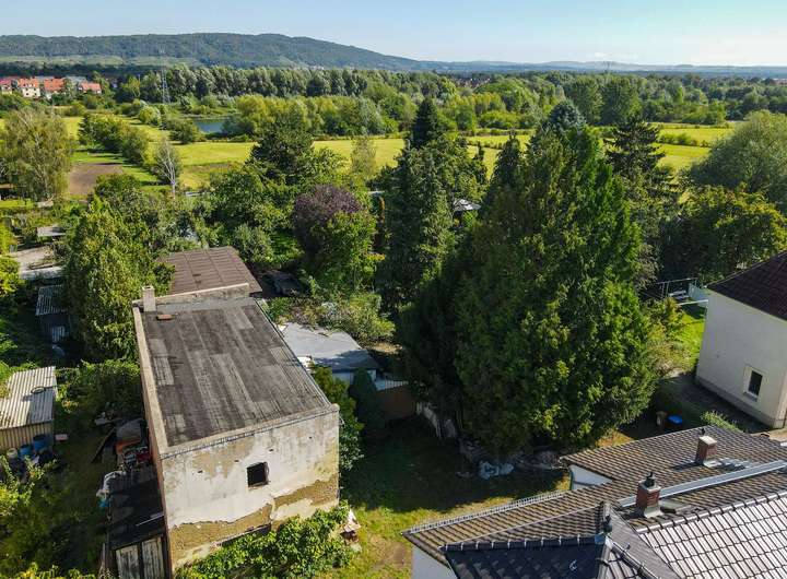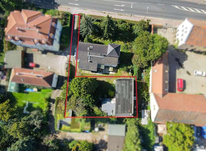 Das Grundstück bietet Platz für einen Baukörper und ist nach §34 des BauGBs bebaubar. Es ist aktuell mit einem sanierungsbedürftigen Gewerbe mit zwei Vollgeschossen und einem Flachdach bebaut.
