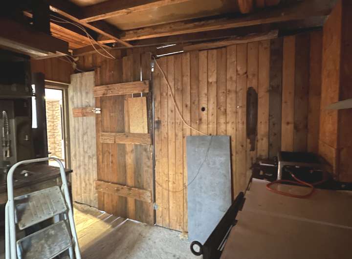 * Abstellfläche (hinter Carport), Geräteschuppen und kleine Werkstatt