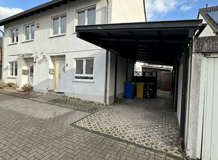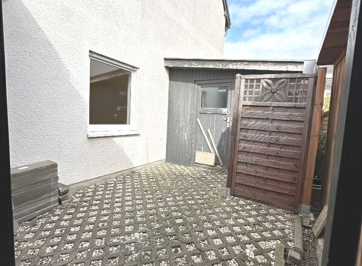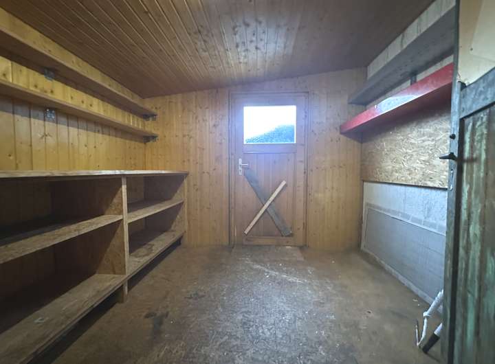 Ein großzügiger Carport bietet ausreichend Platz für einen Pkw. Direkt dahinter befindet sich eine praktische Abstellfläche, die zusätzlichen Stauraum schafft. Über diesen Bereich gelangt man auch in den Geräteschuppen, der wiederum einen direkten Zugang ins Haus ermöglicht – ideal für den Alltag und für Hobbyhandwerker.