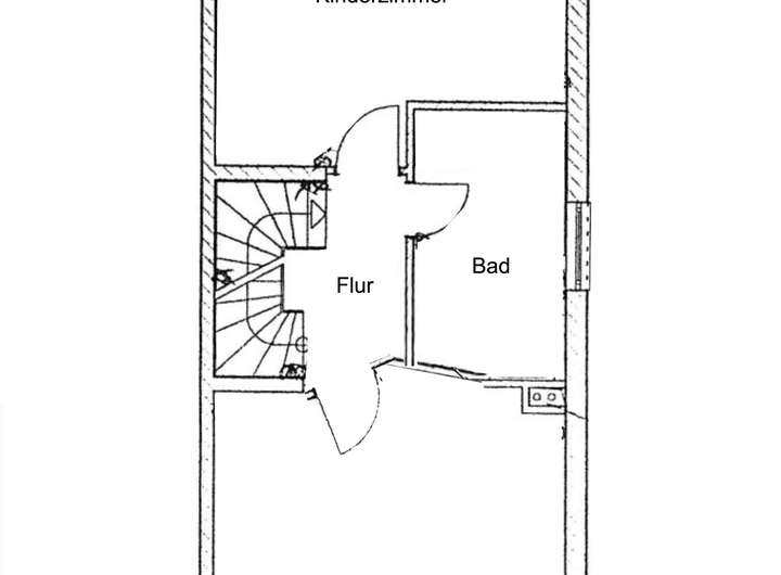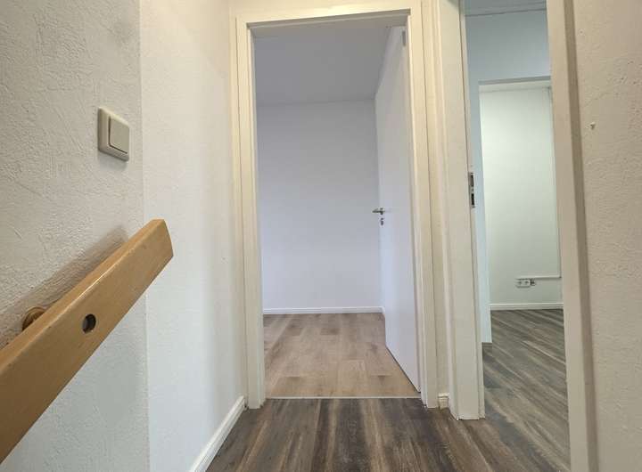 Über die Treppe, die vom Wohnzimmer aus erreichbar ist, gelangt man ins Obergeschoss. Hier befinden sich: