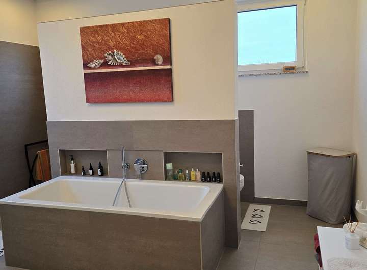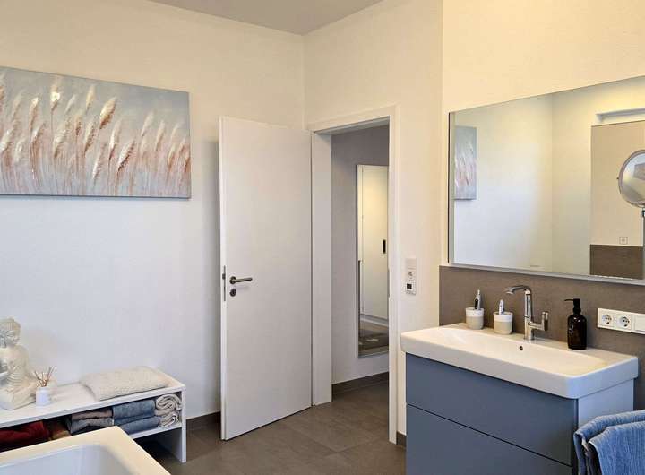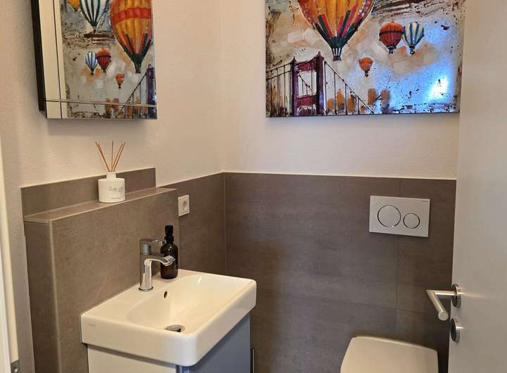 Der Hauswirtschaftsraum mit Waschmaschinenanschluss befindet sich direkt neben dem Eingangsbereich. Hier gibt es ein zusätzliches Gäste-WC