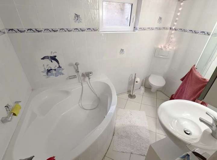 Vollkeller: Der Keller verfügt über drei Räume, von denen einer als Hauswirtschaftsraum genutzt wird. Zudem gibt es ein vollwertiges Badezimmer mit Wanne und Dusche sowie einen Heizungsraum mit einem Öllager von insgesamt 3.000 Litern. Der Keller wurde zuvor vom Vorbesitzer als Wohnraum genutzt, weshalb alle notwendigen Küchenanschlüsse vorhanden sind.