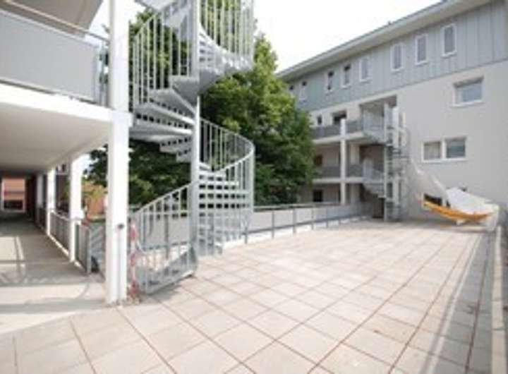 Der großzügige Laubengang vor dem Gebäude bietet Ebenfalls die Möglichkeit, diesen zum verweilen als Balkon zu Nutzen.