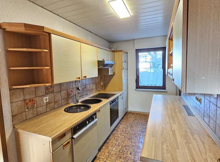 Einfache Ausstattung mit Fliesen, Parkett, 2 Badezimmer, wunderschöner Garten mit Schuppen, 3 Außestellplätze uvm.
