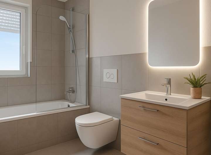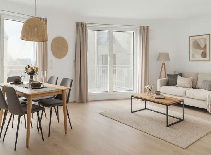 Zur Vermietung steht eine moderne 3,5-Zimmer-Wohnung zum Erstbezug in einem gepflegten Mehrfamilienhaus mit insgesamt acht Parteien. Die Immobilie wird sowohl von einer Hausverwaltung als auch von einem Hausmeisterservice betreut und befindet sich im 1. Obergeschoss.