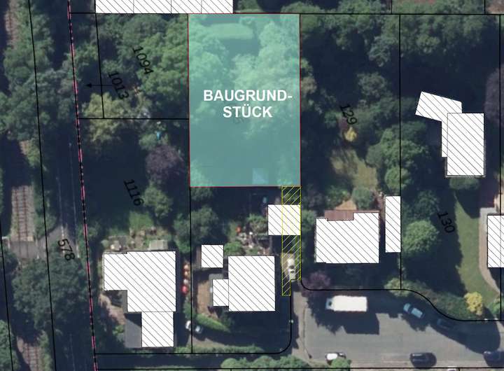 Das Grundstück liegt in zweiter Reihe hinter einem bestehenden Einfamilienhausgrundstück und bietet damit ein hohes Maß an Privatsphäre und Ruhe, ohne auf die Nähe zur Stadt verzichten zu müssen.
