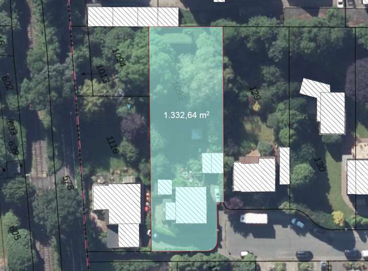 Aktuell befindet sich auf dem Grundstück noch ein Einfamilienhaus mit Garage, das im Zuge einer Neubebauung vollständig zurückgebaut werden müsste.