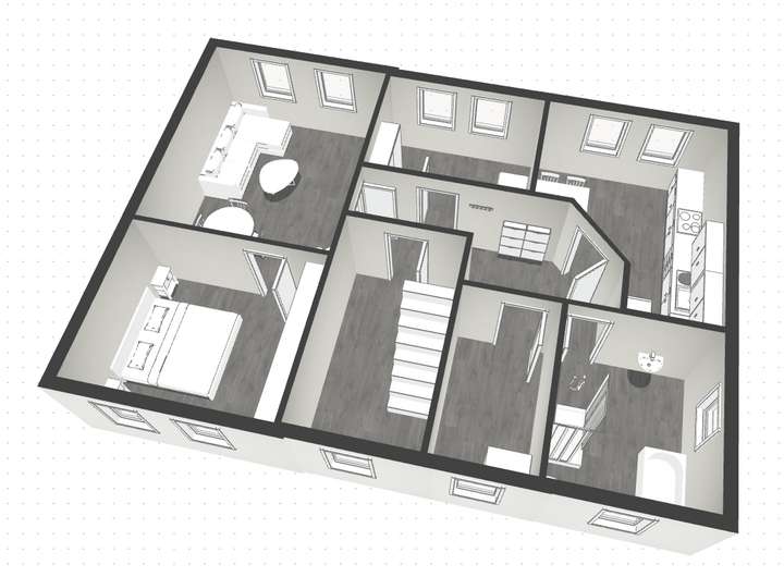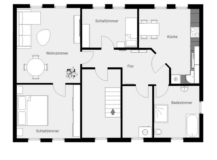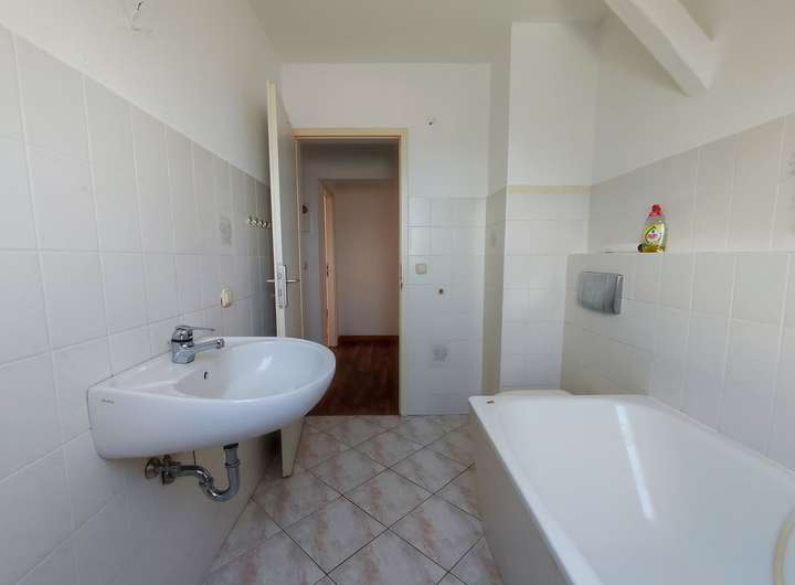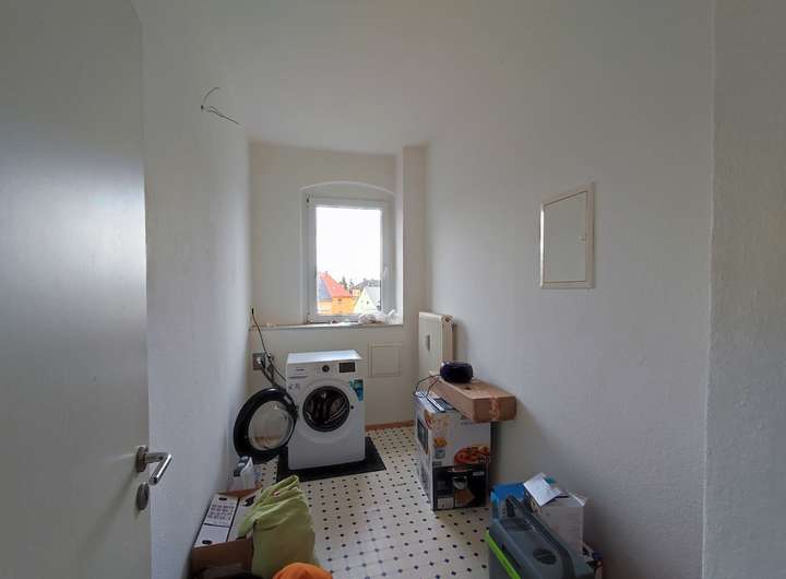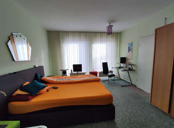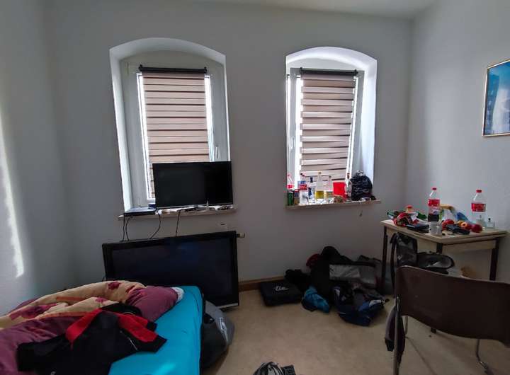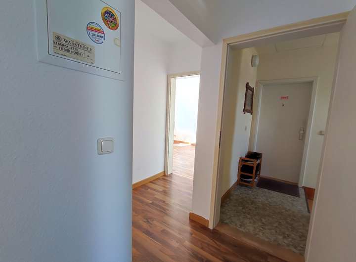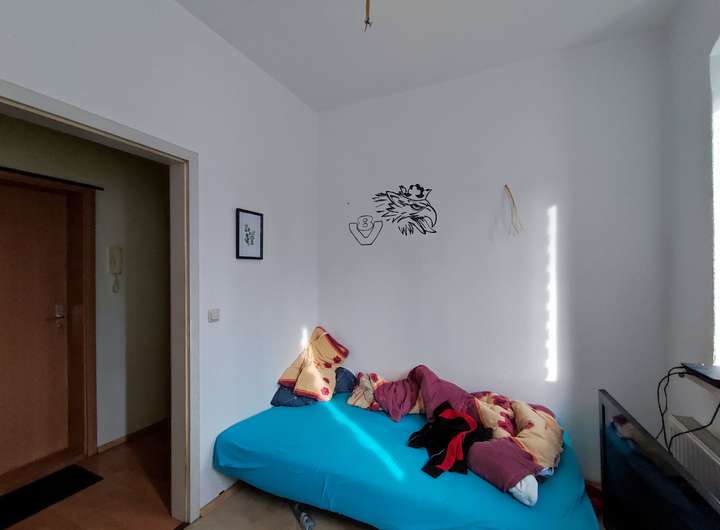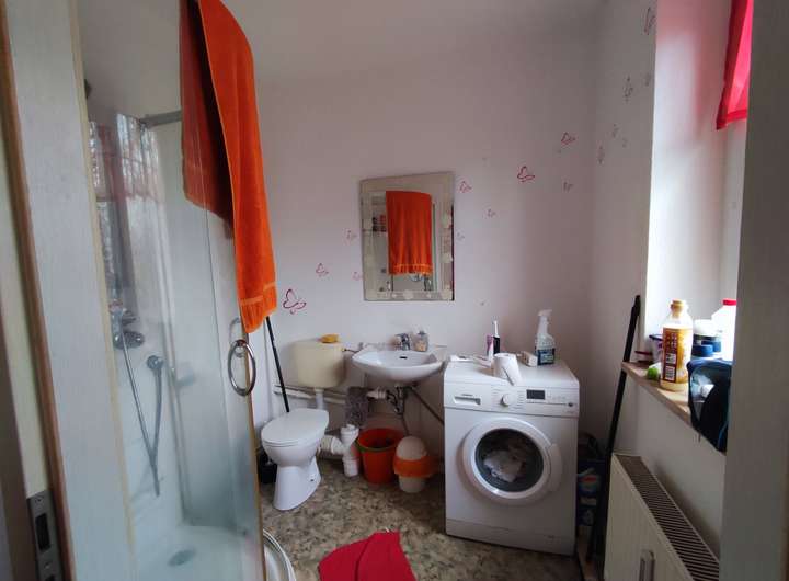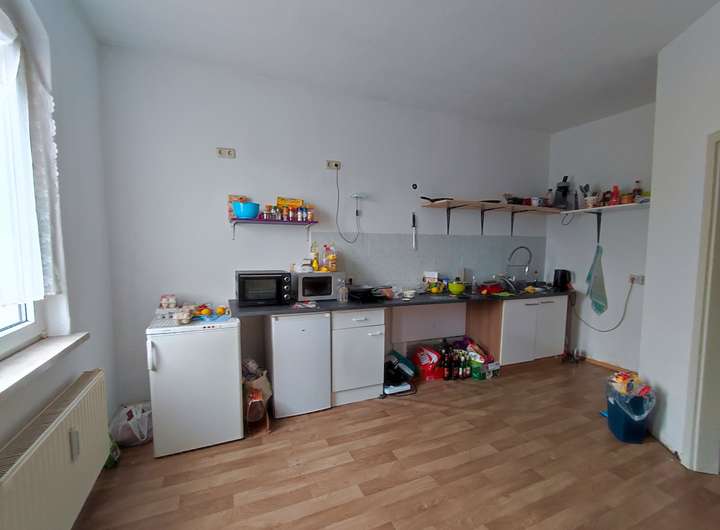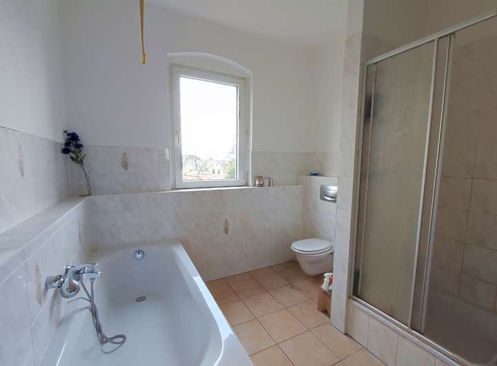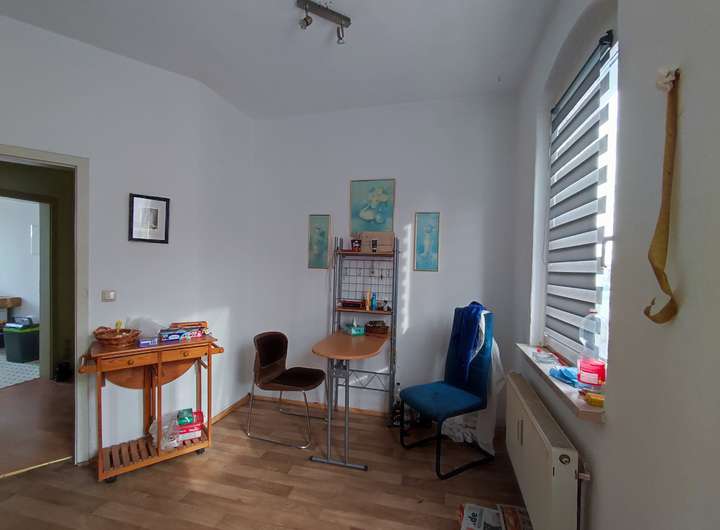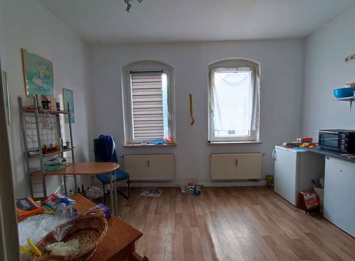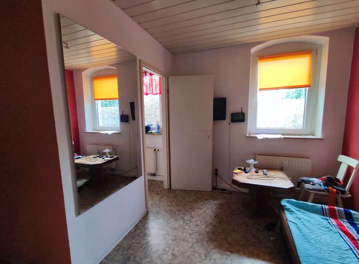 Im Erdgeschoss befinden sich aktuell 2 Monteur-Wohnungen mit einem Wohn-/Schlafraum, Küche und Bad. Diese beiden WEs sind von der Straße über einen separaten Eingang zugänglich. In der Vergangenheit waren hier 2 Gewerbeeinheiten. Ein weiterer Zugang für das 1.OG, das DG und dem Keller befindet sich auf der Rückseite des Hauses. Im 1.OG befindet sich eine große 3-Raum Wohnung, welche sich über die gesamte Etage zieht. Hier steht ihnen ein helles und freundliches Wohnzimmer mit Zugang zum großen Schlafzimmer zur Verfügung. Weiter sind vom Flur aus ein kleines Schlafzimmer, eine große Küche, ein Bad mit Wanne, Dusche, WT und WC sowie ein Abstellraum mit Anschluss für Waschmaschine und Trockner erreichbar. Diese ist zur Zeit ebenfalls an Monteure vermietet, könnte aber auch selbst genutzt werden. Im Dachgeschoss befinden sich 2 kleine 2-Raum Wohnungen, wovon eine WE an einen langjährigen Mieter vermietet ist. Der Dachspitz dient zum Abstellen. Das Haus ist voll unterkellert. Hier gibt es mehrere Abstellräume und den Heizungsraum. Eine 2008 installierte Gas-Zentralheizung versorgt das Gebäude mit Wärme und Warmwasser, wobei 2020 der Warmwasserspeicher erneuert wurde. Vom Keller besteht Zugang zum Garten. Dieser bietet Platz für eine Terrasse für gemütliche Grillabende, einen Wäscheplatz und zum Spielen für die Kinder ist auch genügend Platz. Die Zufahrt zum Hinterhaus wird gemeinschaftlich mit dem Nachbarhaus genutzt. Gegenüber vom Objekt befindet sich ein dazu gehöriger kleiner Parkplatz mit 3 PKW-Stellflächen.