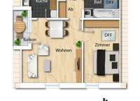 Die Wohnfläche der 2-Zimmer-Dachgeschosswohnung teilt sich wie folgt auf: