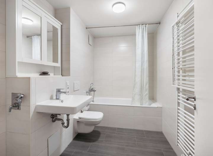 - Zwei Bäder ausgestattet mit großformatigen Fliesen, hochwertigen Armaturen, WM-Anschluss, Handtuchheizkörper, Badewanne und Dusche