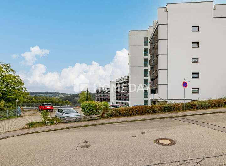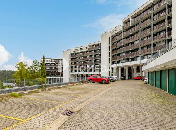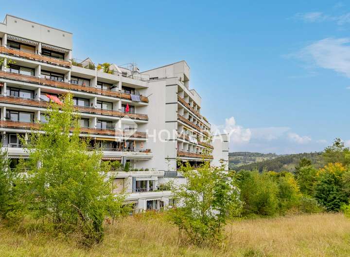 Ein besonderes Highlight ist die gemütliche Loggia mit fantastischem Blick ins Grüne. Der perfekte Ort, um den Feierabend entspannt ausklingen zu lassen. Zur Wohnung gehören außerdem ein praktisches Kellerabteil, das zusätzlichen Stauraum bietet. Der überdachte Stellplatz wird mit 20.000 Euro zusätzlich zum Wohnungskaufpreis berechnet.