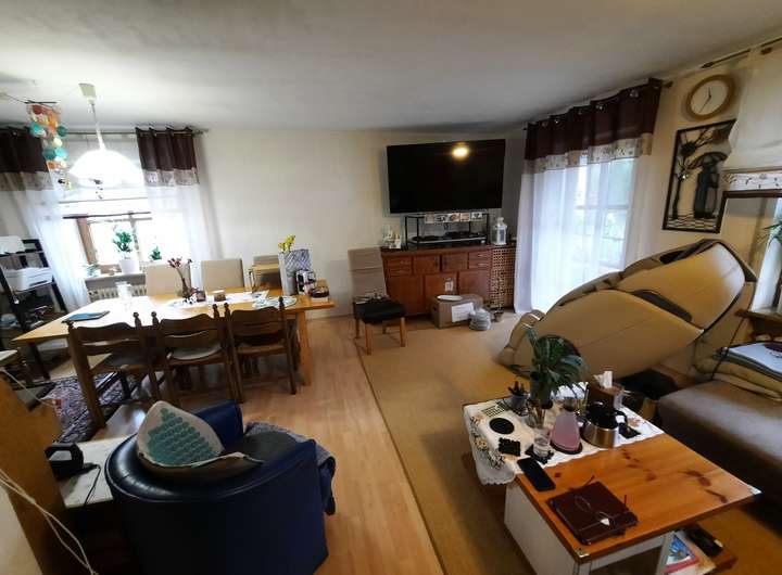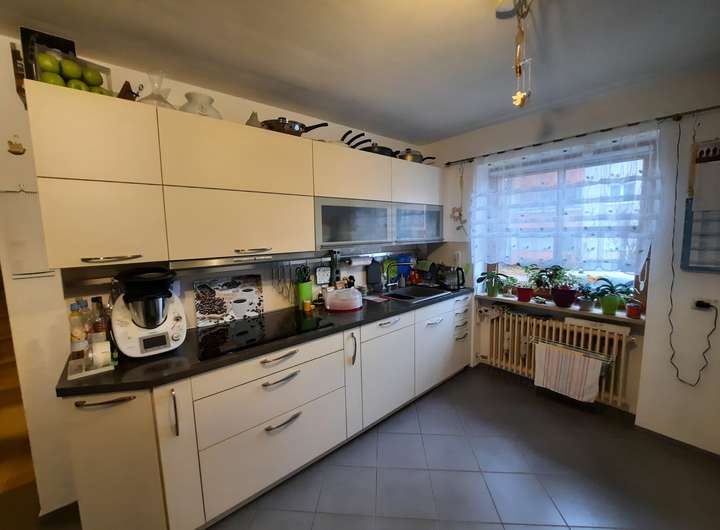 Die großzügige Doppelhaushälfte im Landhausstil befindet sich in einem ruhigen Wohngebiet in Fischach. Das Haus präsentiert sich auf ca. 135 qm mit einem guten Grundriss, im EG empfängt Sie ein freundlicher Eingangsbereich mit Gäste WC und Treppe in das 1. OG und den Keller. Das große Wohn-/Esszimmer ist mit einem Kachelofen ausgestattet, der an kalten Tagen für ein wohliges Raumklima sorgt. Von hier aus erreichen Sie die schöne Südterrasse mit Garten. Die vorhandene Einbauküche mit Essplatz und kleiner Durchreiche ins Wohn-/Esszimmer ist mit allen erforderlichen Geräten ausgestattet und lässt keine Wünsche offen (Cerankochfeld, Backofen, Geschirrspüler, Kühlschrank). Diese kann auf Wunsch vom Vormieter für VB 3.000,-- € abgelöst werden. Das 1. OG bietet Ihnen 3 Schlafzimmer und ein Tageslichtbad mit WC, Wanne, Dusche u. Waschbecken. Von 2 Schlafzimmern gelangen Sie auf den Südbalkon mit wunderbar, grünen Ausblick in den Garten.