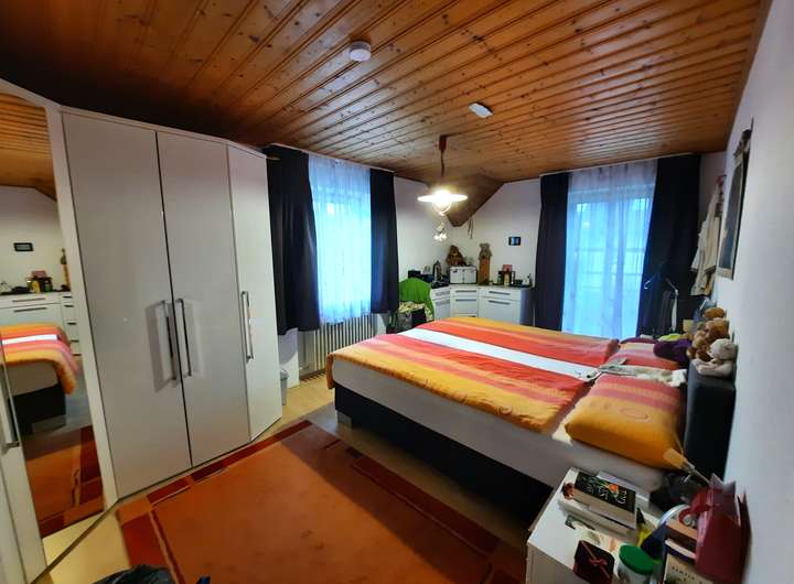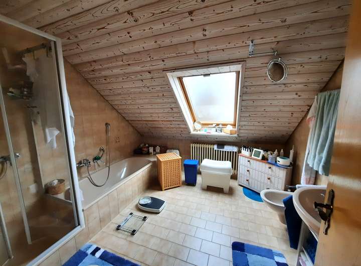 Über eine komfortable Holztreppe erreichen Sie das ausgebaute Dachgeschoß mit einem weiteren geräumigen Zimmer, dass sich sowohl als Büro oder Gästezimmer nutzen lässt. Im Keller befindet sich ein Heizungsraum, eine Waschküche sowie 2 weitere Räume für Werkstatt, Hobbyraum etc. Eine Garage gehört ebenso zum Haus.