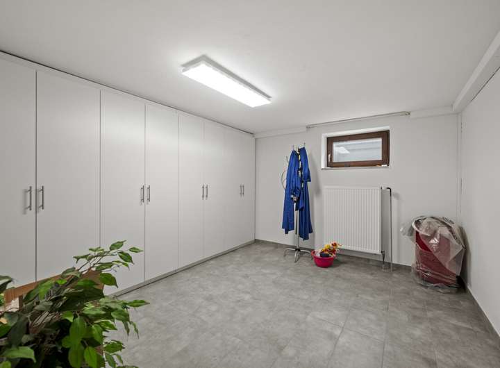 Der 2022 renovierte Keller umfasst einen Technik- und Hauswirtschaftsraum sowie mehrere Abstellräume mit maßgefertigten Einbauschränken und viel Stauraum.