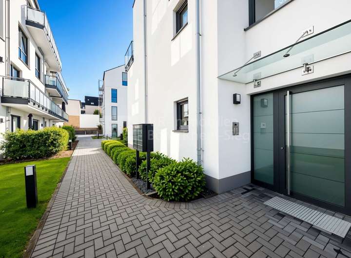Diese hochwertige 2-Zimmer-Wohnung befindet sich im 1. Obergeschoss eines modernen Neubaus aus dem Jahr 2021. Die barrierearme Einheit ist bequem über einen Aufzug erreichbar und liegt ruhig zum schön angelegten, hauseigenen Innenhof ausgerichtet.