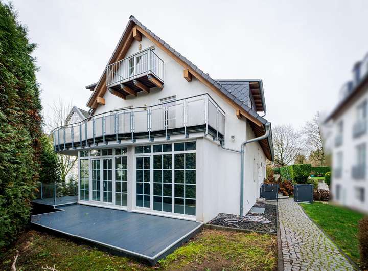 Das gepflegte Wohnhaus aus dem Baujahr 2001 steht in Frankfurt Bergen-Enkheim. Es umfasst rund 185 m² Wohnfläche auf vier Etagen. Der hervorragende Grundriss bietet mehrere nutzbare Ebenen mit modernen Bädern auf jeder Etage. Das großzügige Erdgeschoss ist offen gestaltet und verbindet Wohnen, Essen und Küche. Zwei Terrassen erweitern die Nutzung nach außen. Die oberen Geschosse verfügen über umlaufende bzw. teilumlaufende Balkone mit Blick in Richtung Tal. Große Fensterflächen sorgen für tolle Lichtverhältnisse und eine großzügige und beeindruckende Raumatmosphäre.