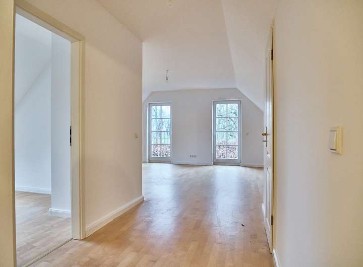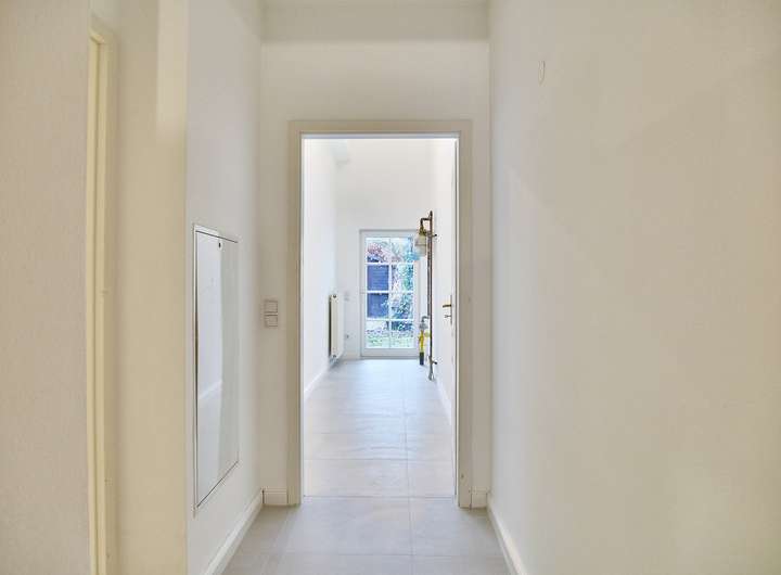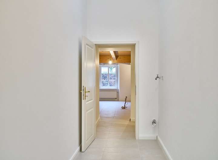 Im Erdgeschoss präsentiert sich die Wohnung als großzügiger, offener Lebensbereich mit viel Charme und einem gelungenen Mix aus Altbauatmosphäre und moderner Überarbeitung.