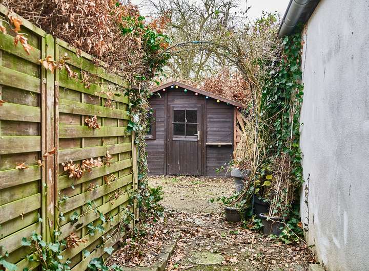 Die Küche ist als Wohnküche angelegt: Alle Anschlüsse für den Einbau einer modernen Einbauküche sind bereits vorbereitet, sodass der Käufer seine Wunschküche frei planen kann. Durch die gute Platzaufteilung lassen sich hier Kochbereich, Essplatz und Wohnen hervorragend kombinieren. Mehrere Holzfenster mit Isolierverglasung sorgen für viel Tageslicht und einen angenehmen Bezug zum Garten.