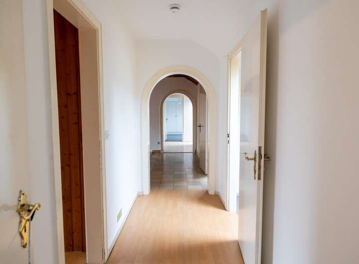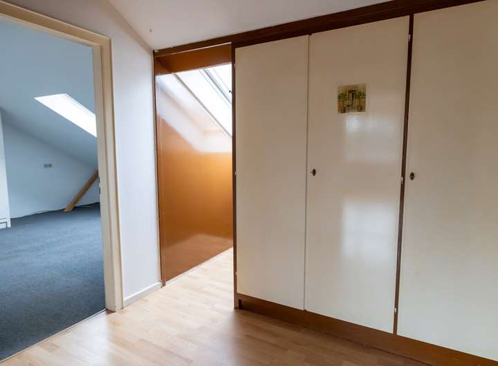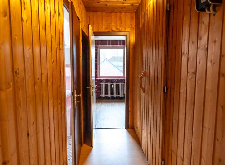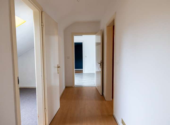 Die Dachgeschosswohnung mit ca. 126,38 m² Wohnfläche bietet 3 Zimmer, eine Küche, ein Vollbad, ein Gäste-WC, eine Sauna sowie einen Balkon und ist aktuell frei, während die beiden Erdgeschosswohnungen vermietet sind. Ergänzt wird das Raumangebot durch einen Teilkeller mit Außeneingang sowie einen Zugang zum Dachboden über das Dachgeschoss.
