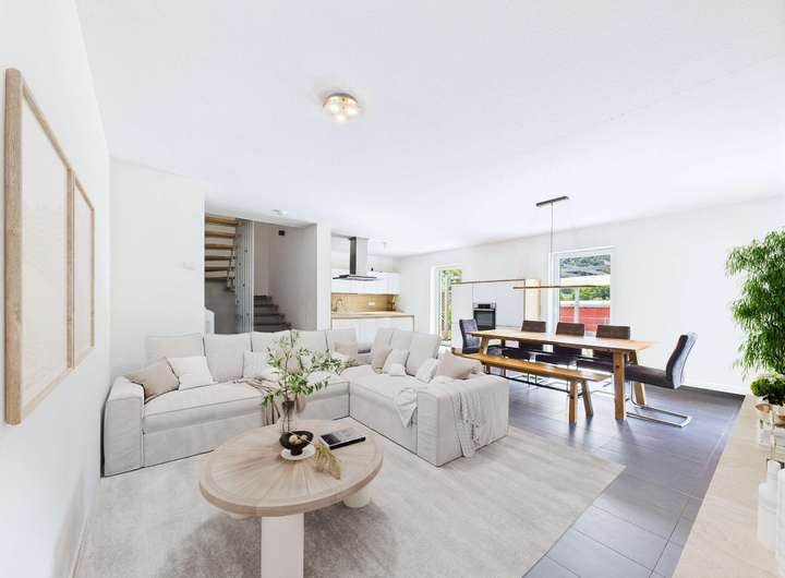 Diese attraktive Doppelhaushälfte mit insgesamt sechs Zimmern, großzügiger Terrasse, Garage und Stellplätzen bietet viel Raum für die ganze Familie.