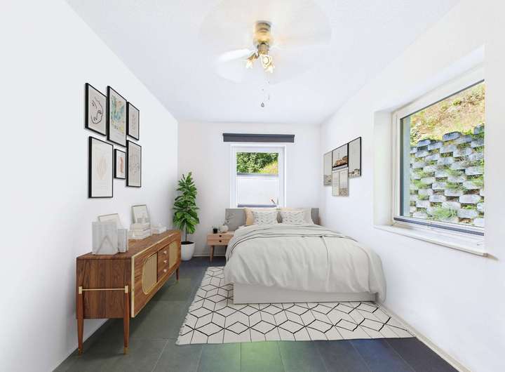 Das ausgebaute Dachgeschoss bietet einen zusätzlichen Wohn- oder Schlafraum, der ebenso als Rückzugsort oder kreativer Hobbybereich genutzt werden kann.