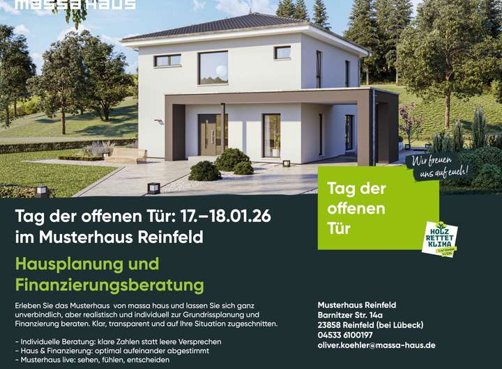 Dieses wunderschöne massa Niedrigenergie-Haus überzeugt durch die Möglichkeit, ein individuelles Hauskonzept samt Grundriss zu gestalten. Es besticht gleichzeitig mit einem Preis-Leistungs-Verhältnis, das keine Wünsche offen lässt. Mit den zahlreichen Optionen selbst mit anzupacken, können Sie nicht nur bares Geld sparen, sondern Sie werden auch lebenslang mit dem Stolz belohnt, Ihr Haus selbst mit erschaffen zu haben. Heute ist der richtige Zeitpunkt für den ersten Schritt in ein eigenes Zuhause für die ganze Familie!