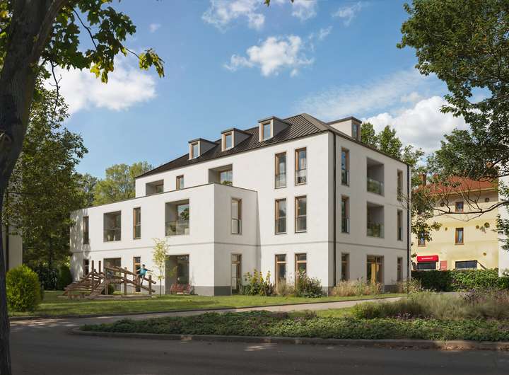 Das Mehrfamilienhaus mit 11 Wohneinheiten auf drei Etagen (EG, 1.OG, 2. OG) befindet sich direkt neben dem Hotel. Zwischen MFH und Hotel ist die Einfahrt für die Tiefgarage des MFH.