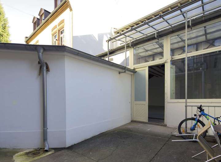 Das riesige, lichtdurchflutete Studio in der Heidelberger Weststadt kann als Gewerbe-Einheit oder große Loft-Wohnung genutzt werden und liegt in einem Hinterhof eines Altbau Ensembles, das man durch eine schöne Holztür betritt.