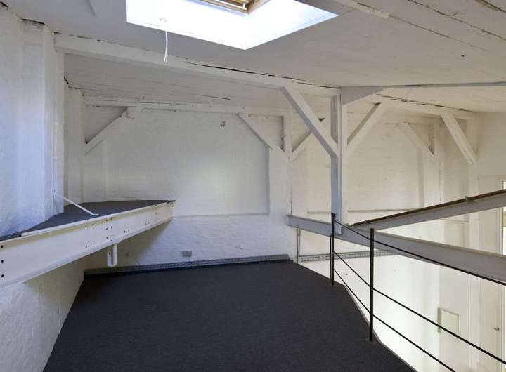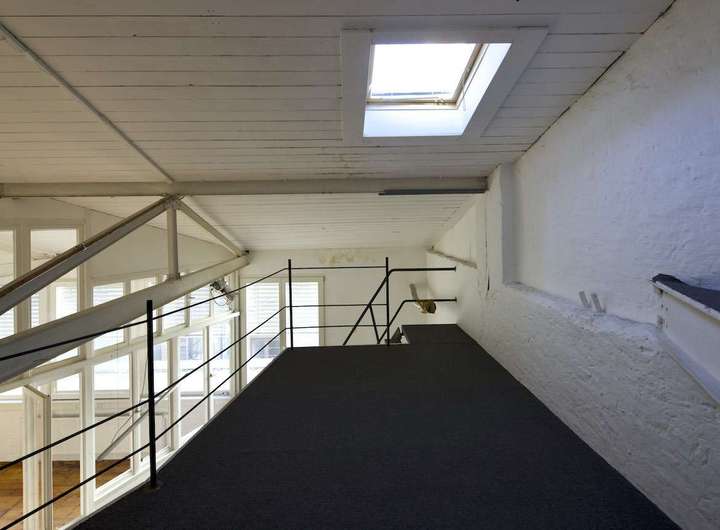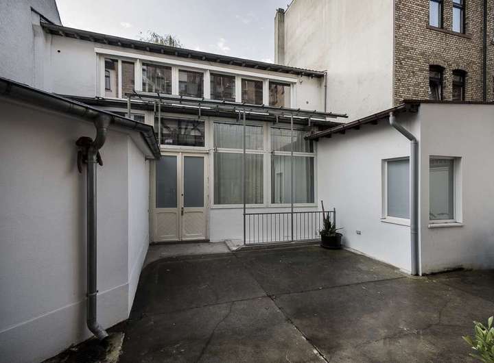 Über einen kleinen Innenhofbereich gelangt man zu dieser besonderen Einheit mit zusätzlichem Ausbau-Potenzial. Der untere Raum, mit knapp 160 qm Fläche, diente früher als Fotostudio, das Obergeschoss mit Altbau-Flair als ergänzende Wohnung, die man über eine schöne Holztreppe erreicht.