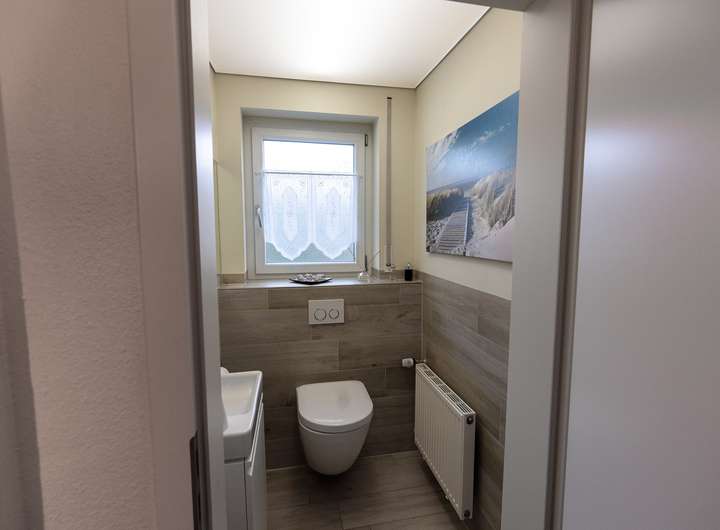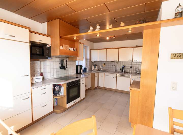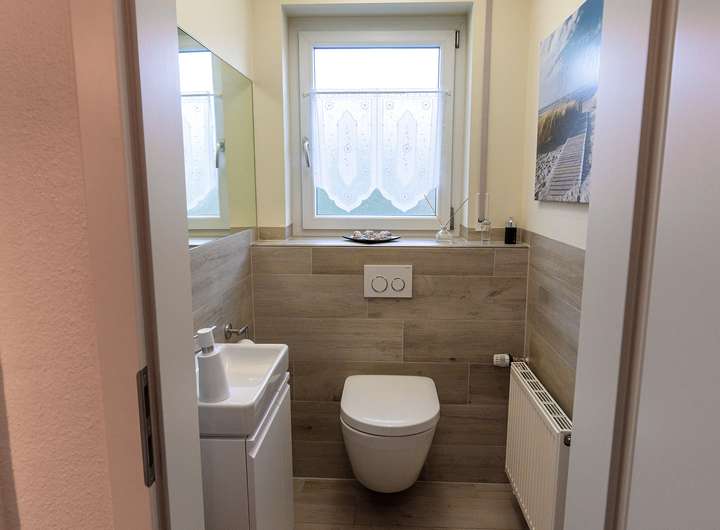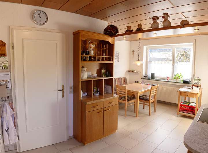 Neben 3,5 gemütlichen Zimmern bietet Ihnen das Erdgeschoss eine helle Küche mit Einbauküche und einen charmanten Essbereich. Ein separates Gäste-WC ergänzt das Angebot.