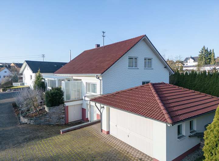 Zusätzlich steht Ihnen eine Doppelgarage aus dem Jahr 1997 zur Verfügung. Auf der 2008 neu gepflasterten Hoffläche finden zudem weitere Fahrzeuge komfortabel Platz. Hinter der Doppelgarage befindet sich eine großzügige Holzlagermöglichkeit.