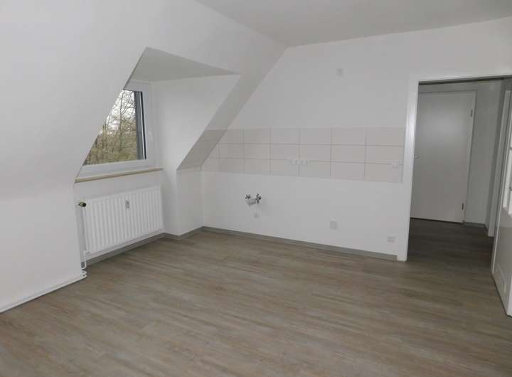 Diese gemütliche Dachgeschosswohnung befindet sich in einem frisch modernisierten, gepflegten Mehrfamilienhaus. Herzstück der Wohnung ist die geräumige Küche, die ausreichend Platz für einen großen Esstisch bietet. Das Wohnzimmer geht von der Küche ab. Schlafzimmer und Badezimmer gehen von der kleinen Diele ab. Das Tageslichtwannenbad ist hell und modern gefliest. Die Wohnung kann kurzfristig bezogen werden.