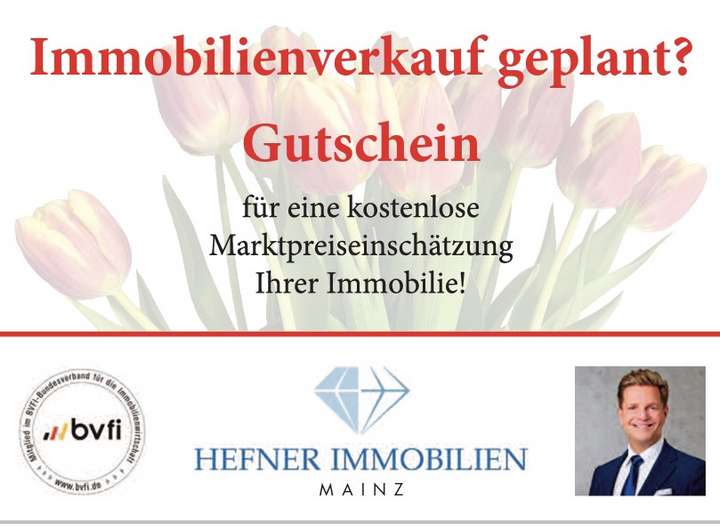 Wenn Sie Ihre Immobilie verkaufen oder vermieten möchten, sprechen Sie gerne Herrn Hefner an. E-Mail: kontakt@hefnerimmobilien.de oder Tel.: 06131 921314 oder mobil: 0178 6481019.