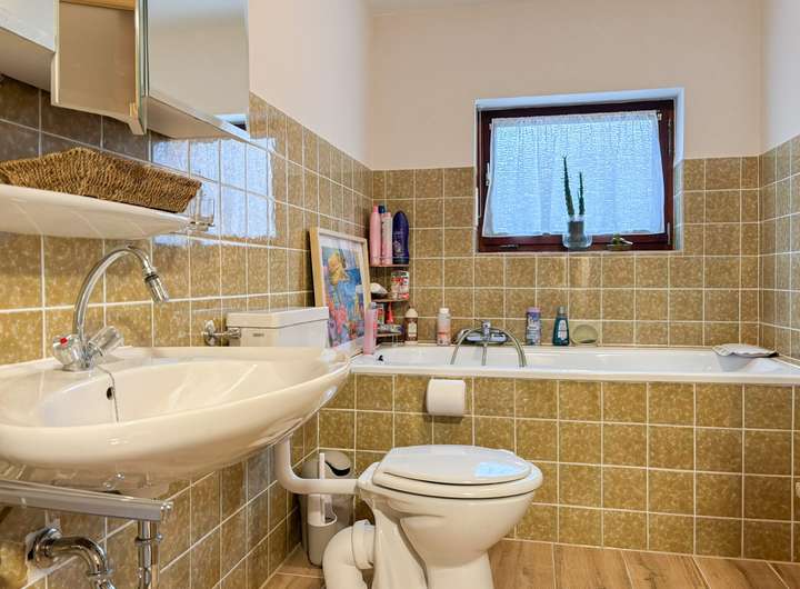 Dieses gepflegte Einfamilienhaus mit Einliegerwohnung im Untergeschoss präsentiert sich in einem guten Allgemeinzustand. Vom großzügigen Wohnzimmer mit Kaminofen können Sie vom Balkon aus eine herrliche, unverbaute Aussicht genießen. Die Einliegerwohnung umfasst zwei Zimmer, Küche, Badezimmer und kann problemlos in die Hauptwohnung integriert werden und schafft somit mehr nutzbare Wohnfläche für die Familie. In den letzten Jahren wurden die Fenster fortlaufend ausgetauscht. Darüber hinaus erfolgte 2023 die Erneuerung der Heizungsanlage sowie der Austausch des Stromverteilerkastens – ein bedeutender Vorteil für zukünftige Eigentümer. Die Bäder sowie das Gäste-WC entsprechen dem ursprünglichen Baujahr und befinden sich in einem soliden Zustand. Der Boden im gesamten Untergeschoss wurde bereits erneuert.