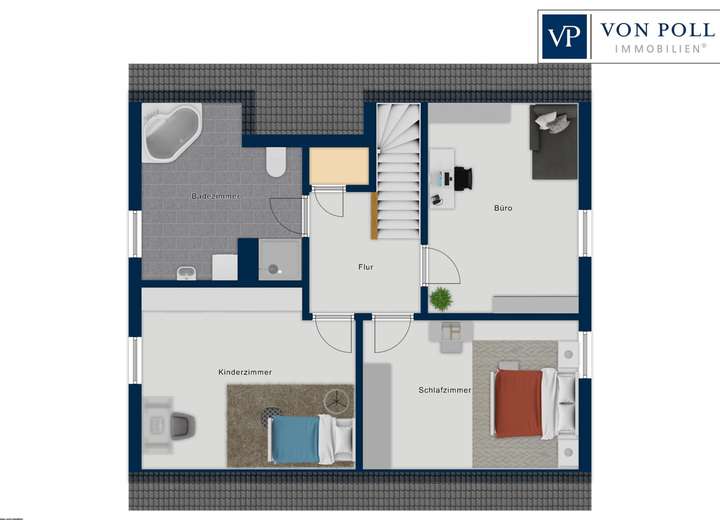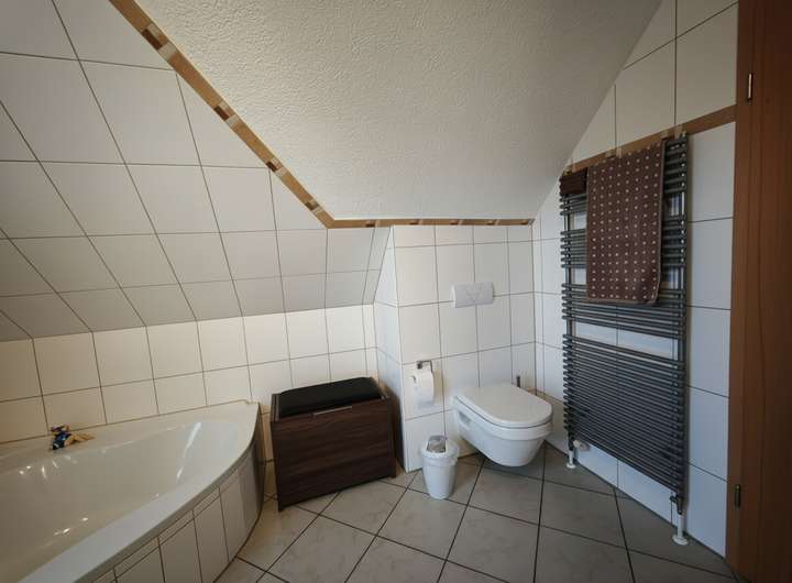 Zusätzlich bietet der gedämmte Dachboden praktischen Stauraum für saisonale Gegenstände oder weiteres Inventar.