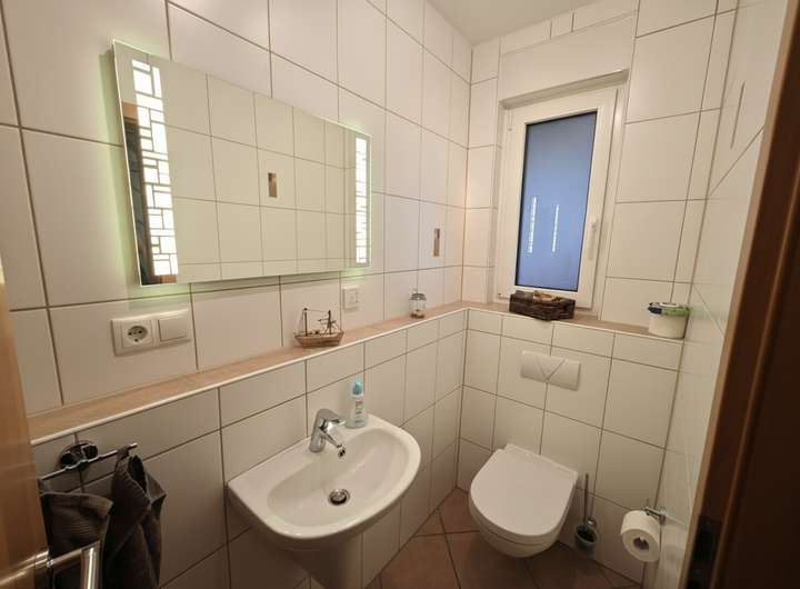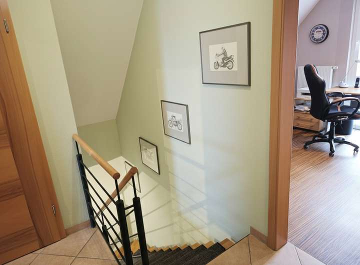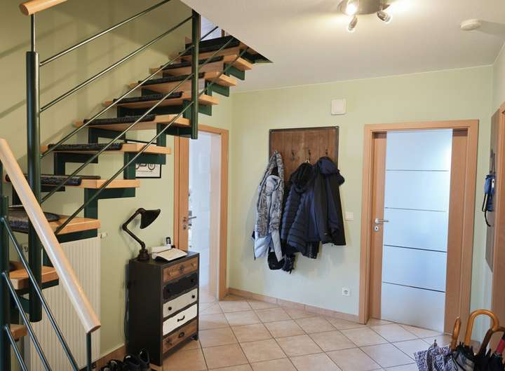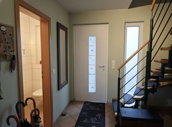 Bereits im Eingangsbereich wird der hohe Wohnkomfort spürbar: erneuerte Innentüren, neue 3-fach Fenster (2024) und eine neue Haustür unterstreichen den modernen Charakter der Immobilie. Die frisch renovierten Wände im Erdgeschoss (Malerarbeiten 2025) sorgen für ein helles, gepflegtes Ambiente.
