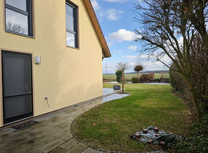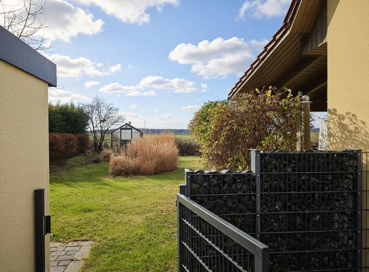 Eine neue Garage (2022) bietet sicheren Stellplatz für Ihr Fahrzeug und ergänzt das stimmige Gesamtbild des Hauses. Der Außenbereich ist gepflegt gestaltet und bietet ausreichend Platz für Freizeitaktivitäten, Spielgeräte oder gärtnerische Projekte.