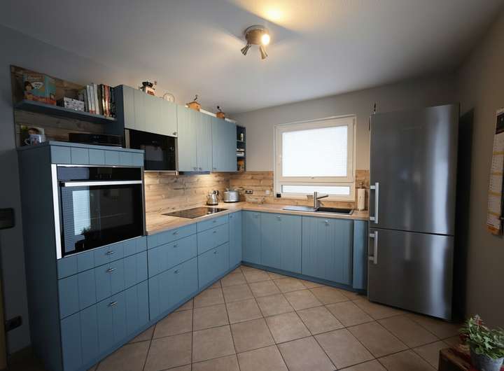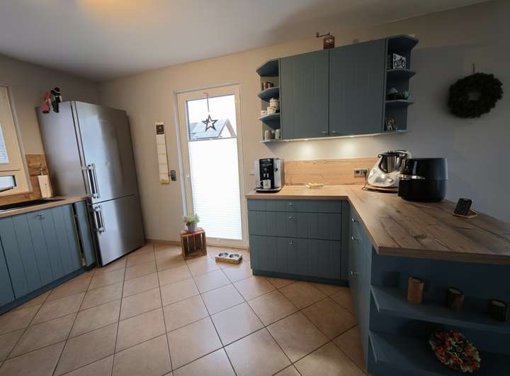 Die offene, 2020 erneuerte Küche erfüllt höchste Ansprüche an modernes Kochen und bietet hochwertige Einbaumöbel sowie zeitgemäße Elektrogeräte.