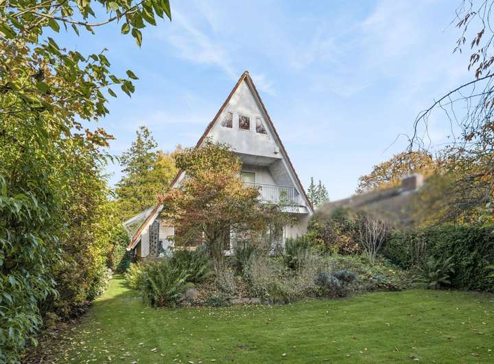 In begehrter Wohnlage von Hamburg-Meiendorf, direkt an der Grenze zu Volksdorf und in unmittelbarer Nähe zum idyllischen Volksdorfer Wald, befindet sich dieses architektonisch außergewöhnliche Einfamilienhaus. Das ca. 1980 errichtete Haus bietet ca. 185 m² Wohnfläche, verteilt auf Erd- und Dachgeschoss, und steht auf einem herrlichen, ca. 620 m² großen Grundstück mit Carport.